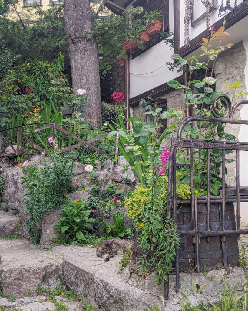 ブルガリアのお花が綺麗なお庭でお昼寝