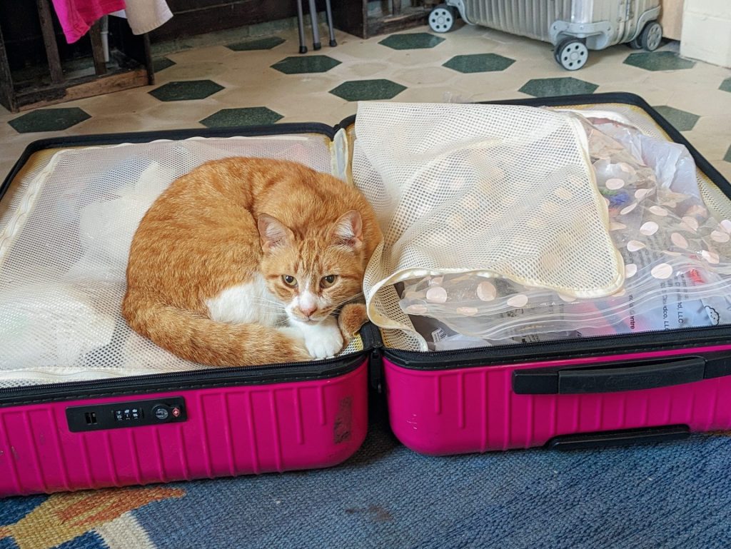 きなこちゃん ふわふわちゃんと同じく遊びに来てくれてたトルコの猫さん。この子は大家さんタイプ。朝なかなか起きられないダメな私を起こしてくれる。ベッドの上のシーツだと思ってた布が実は掛布団で、掛け布団の中に潜り込んで 『こうやって使うの!』って教えてくれた。天才猫。キャリーバッグの上がお気に入り。キャリーバッグからパンツ取り出そうとしたら怒られた(笑)